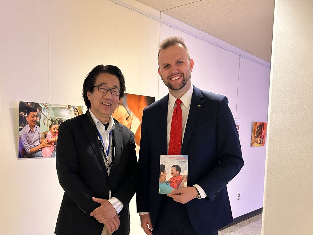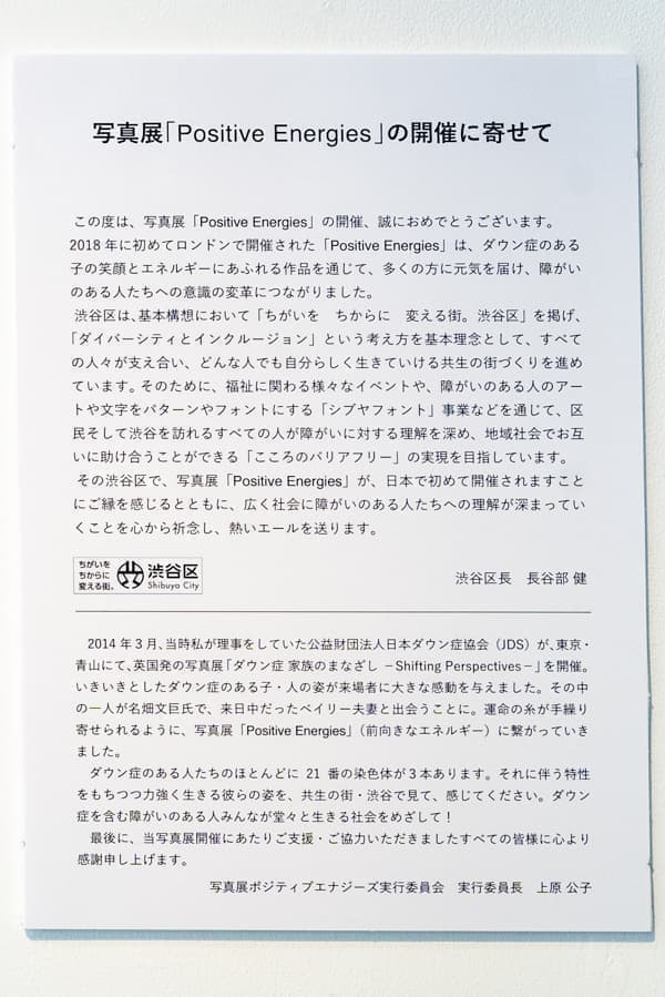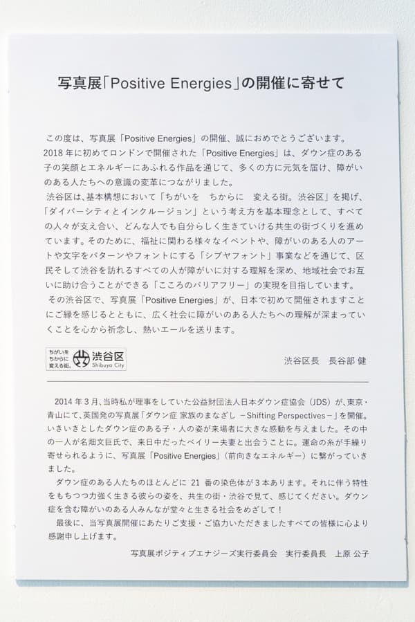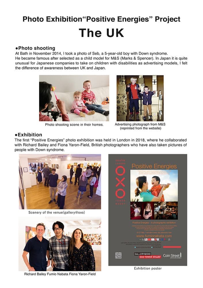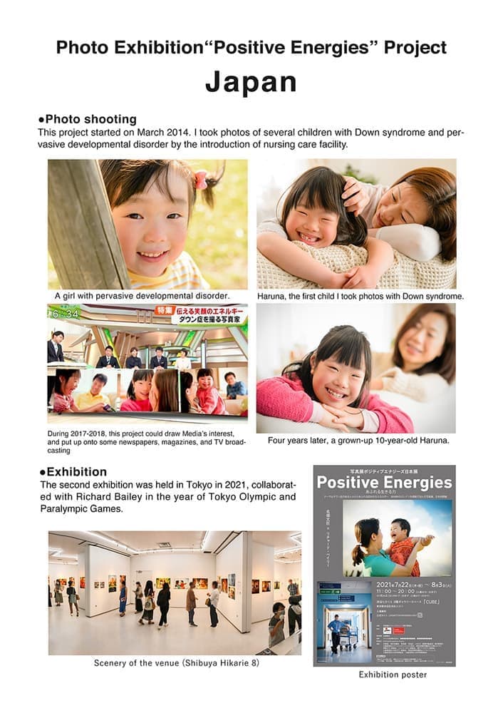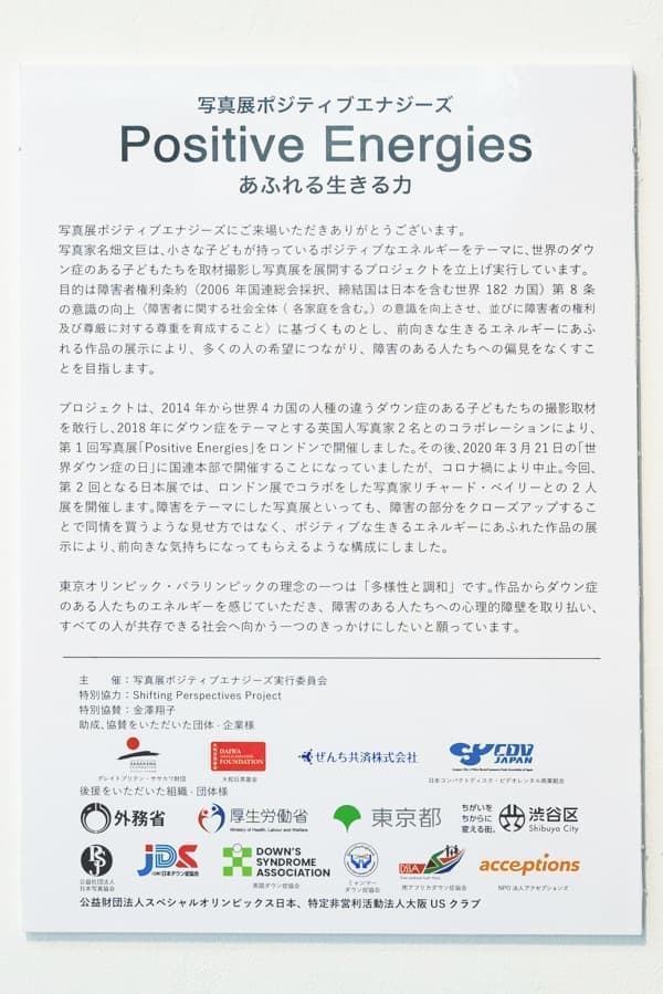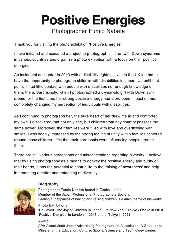 Photo Exhibition ‘Positive Energies’ at the United Nations Photography by Fumio Nabata Organized by NPO Osaka US Club Co-organized by the Permanent Mission of Japan to the United Nations Managed by Photo Exhibition Positive Energies Project Executive Committee Date: 12-16 June 2023 Venue: General Assembly Bldg. 1B Neck Exhibition Area in the United Nations Headquarters. Address: 406 E 42nd St, New York, United States Supported by Japan Down Syndrome Society Down’s Syndrome Association Down Syndrome South Africa