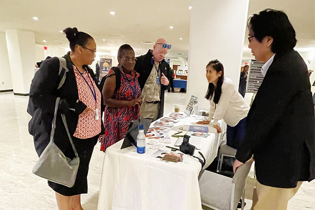 Many representatives from different countries and NGOs visited the exhibition in the exhibition hall near Conference Room 4 where COSP16 was held. Most of the visitors gave positive feedback that they were impressed. Representatives and NGOs from India, Mongolia and Namibia also asked us to come to their countries. The exhibition was shown in public galleries in London and Tokyo and was visited by many people. This time was particularly meaningful as the most of the visitors were involved in the Convention on the Rights of Persons with Disabilities and shared the same purpose as this project.